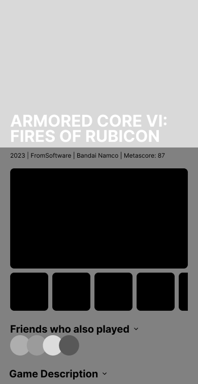 The game page's main concern was in how to put all the information necessary, while maitaining a friendly and easy experience for the user. For that, all information sections can be expanded or hidden by a simple touch.